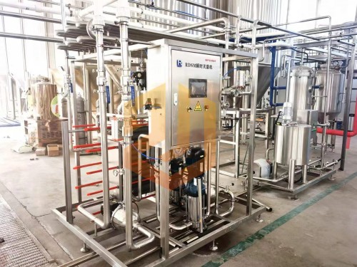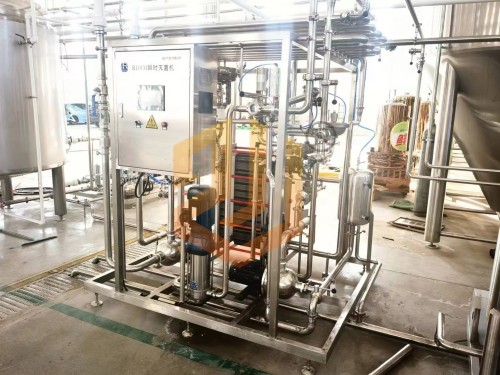啤酒殺菌時利用高壓啤酒泵送入二段式板式換熱器預(yù)熱段,與已完成殺菌的熱啤酒預(yù)加熱至62℃左右,再經(jīng)過高溫保溫段用85℃的熱水將啤酒加熱到78℃,在保溫管段保溫30秒后達(dá)到巴氏殺菌單位25pu值,然后再被預(yù)熱的冷啤酒降溫至4℃,進(jìn)入緩沖罐準(zhǔn)備灌裝。板式殺菌機組采用高精度的數(shù)控調(diào)節(jié),自動控制和安全保護(hù)措施,并可與CIP系統(tǒng)配合進(jìn)行設(shè)備自動清洗。